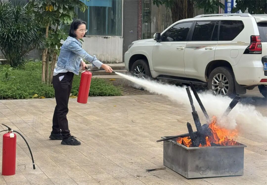 应急演练环节由安全管理部门组织实施,模拟办公区突发火情场景。员工们严格按照培训要求,低姿捂口鼻、沿安全通道有序疏散至指定集合点,全程紧张有序、配合默契。随后的灭火器实操教学中,教练员现场演示了手提式干粉灭火器、二氧化碳灭火器及推车式干粉灭火器的使用步骤,员工分组实操练习,确保每人都能熟练掌握初起火灾扑救技能。